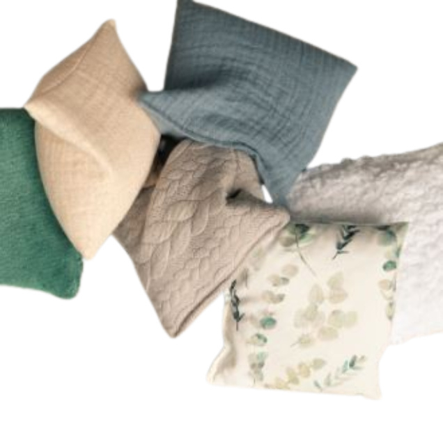 De pittenzakjes zijn gevuld met natuurlijke materialen, namelijk kersen-, druivenpitten en een mix daarvan. Alle stoffen zijn voorzien van een OEKO-TEX keurmerk.