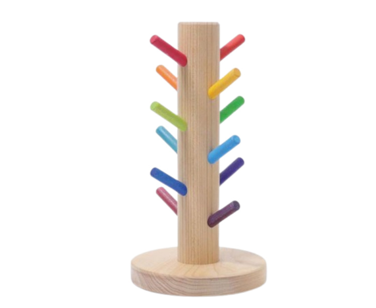 Artikelnummer: G10162 OverzichtLeuk sorteerspel met 12 regenboogkleurige stokjes. Perfecte opbergmogelijkheid voor de 24 regenboogkleurige bouwringen (G10164).