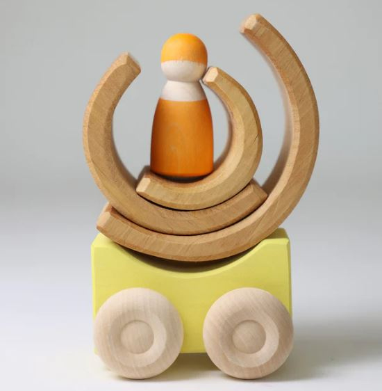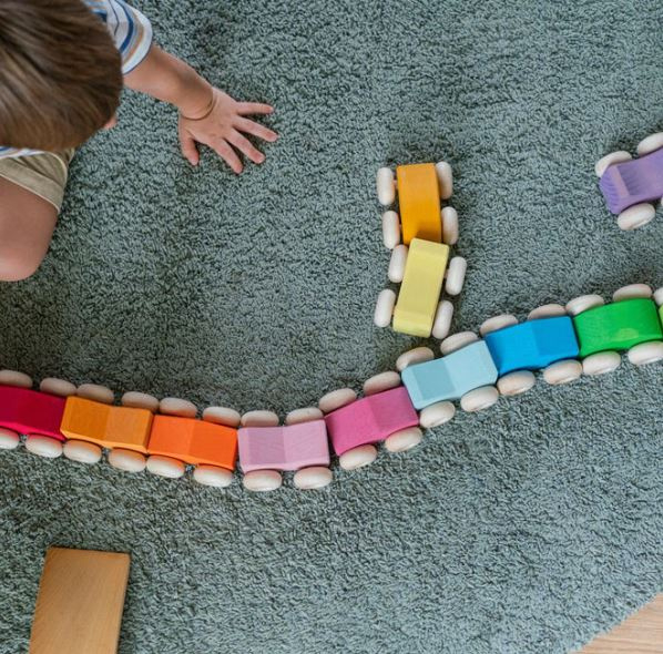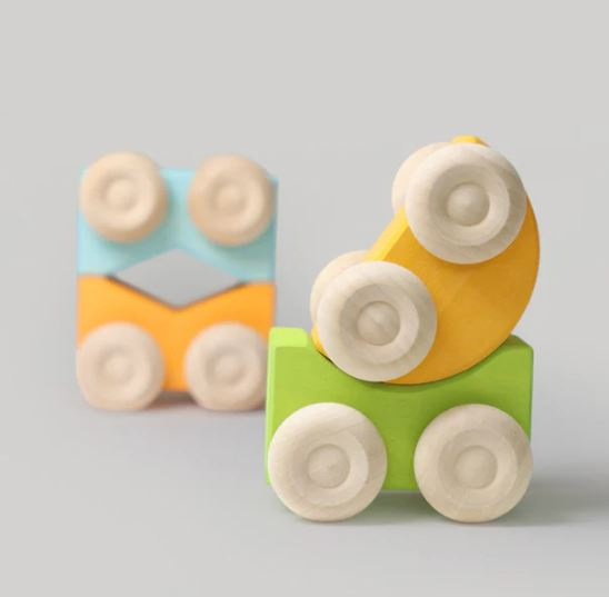Artikelnummer: G09330 OverzichtOnze stapelauto's van Grimms kunnen op elkaar worden gestapeld en ze kunnen rollen. Bovendien kunnen ze worden uitgebreid met andere elementen en vervolgens worden vervoerd. De verschillende kleurencombinaties en vormvariaties laten jonge kinderen kennismaken met kleurharmonieën en het principe van het matchen van stukken met hun tegenhangers.