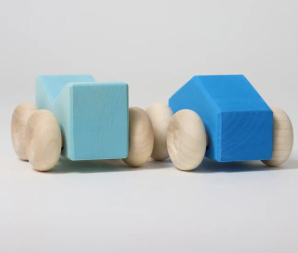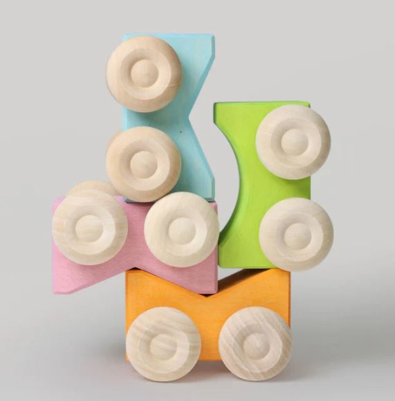Onze stapelauto's van Grimms kunnen op elkaar worden gestapeld en ze kunnen rollen. Bovendien kunnen ze worden uitgebreid met andere elementen en vervolgens worden vervoerd. De verschillende kleurencombinaties en vormvariaties laten jonge kinderen kennismaken met kleurharmonieën en het principe van het matchen van stukken met hun tegenhangers.