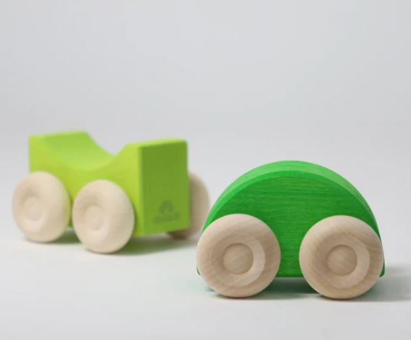 Onze stapelauto's van Grimms kunnen op elkaar worden gestapeld en ze kunnen rollen. Bovendien kunnen ze worden uitgebreid met andere elementen en vervolgens worden vervoerd. De verschillende kleurencombinaties en vormvariaties laten jonge kinderen kennismaken met kleurharmonieën en het principe van het matchen van stukken met hun tegenhangers.