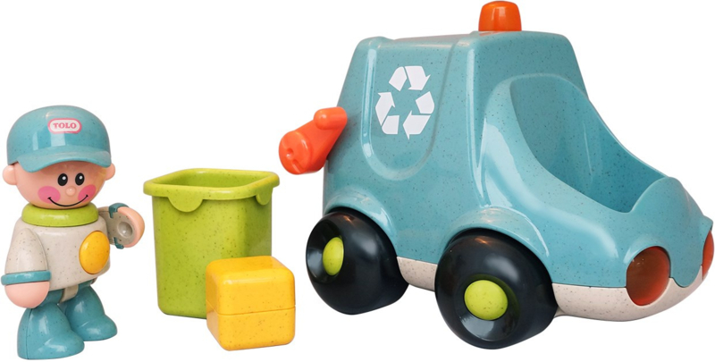 Artikelnummer: TS60880 OverzichtMet de Tolo BIO First Friends vuilniswagen wordt opruimen een echt avontuur! Deze kleurrijke vuilniswagen is speciaal ontworpen voor kleine handjes en stimuleert fantasierijk spel. Het stevige ontwerp en de vrolijke chauffeur met klikkend hoofd en beweegbare armen en benen zorgen voor eindeloos speelplezier.