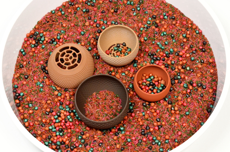 Gebruik de kommen om te scheppen, sorteren, vullen, zeven, stempelen, stapelen of gieten, met zand, water, rijst of andere natuurlijke materialen. De speciale bodems zorgen voor extra speelplezier: perfect voor watertafels, tufftrays of buitenavonturen!
