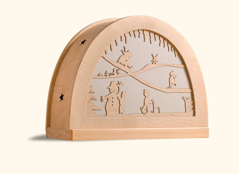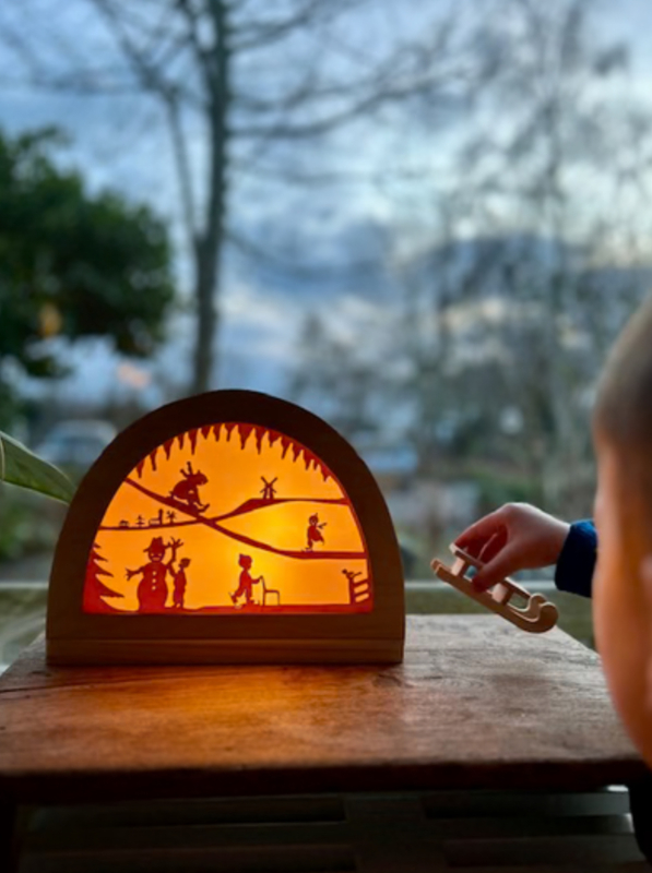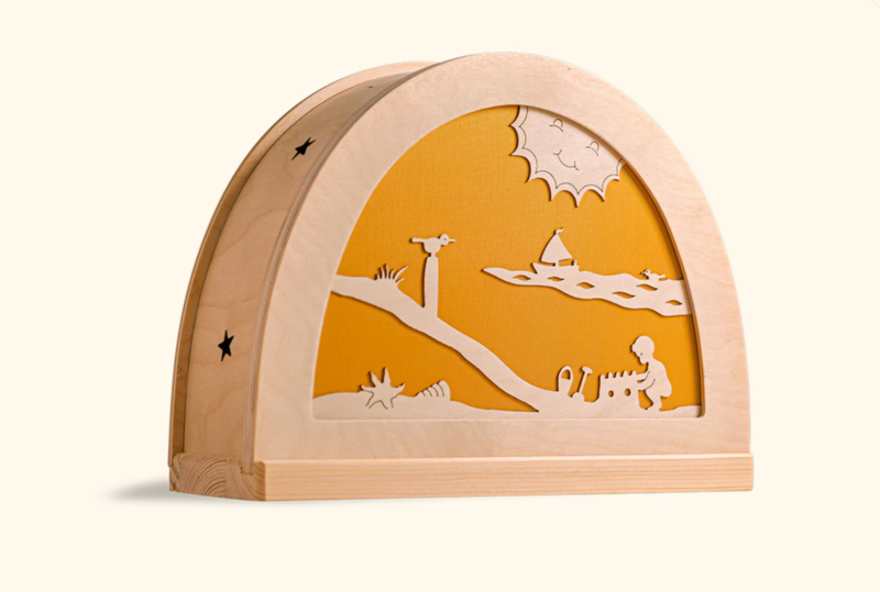 Laat kinderen het wonder van de vier seizoenen ontdekken met deze betoverende seizoenslamp. Met zijn handgemaakte houten bogen, zachte kleuren en sfeervolle lichtspel vertelt de lamp op speelse wijze het verhaal van lente, zomer, herfst en winter.