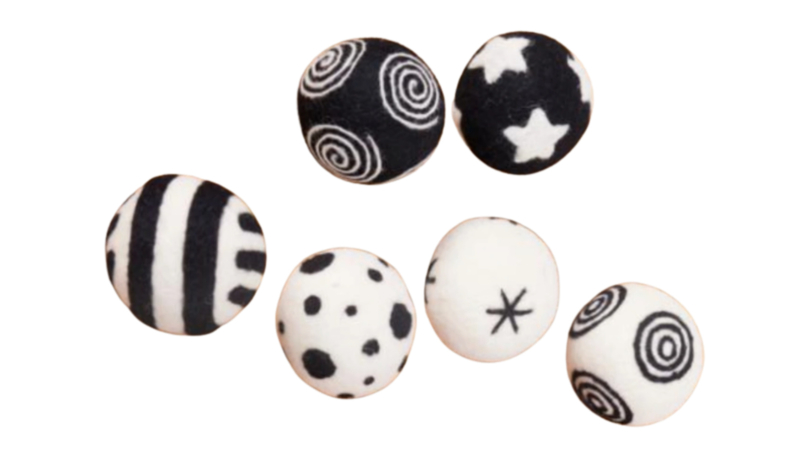 Baby patroonballen contrasterend zwart/wit, set van 6