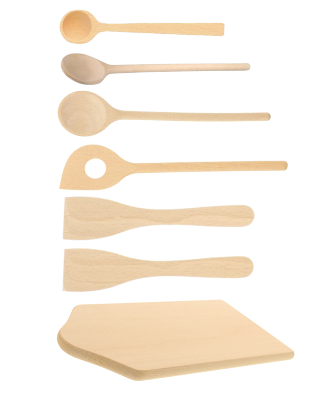 Set kleine lepels en spatels met broodplankje, 7-delig