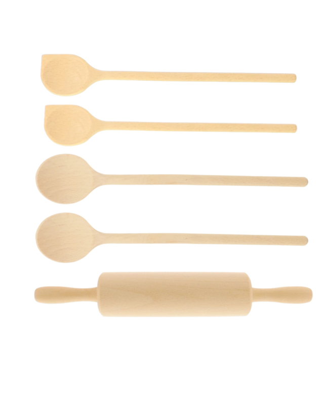 Artikelnummer: HS11240 OverzichtMet deze mooie set pollepels en deegroller kunnen de chefkoks in de kinderopvang zich helemaal uitleven.