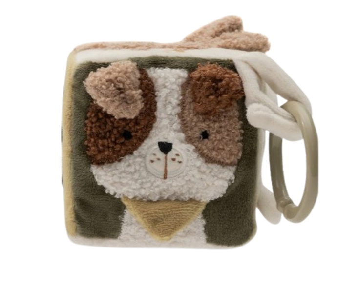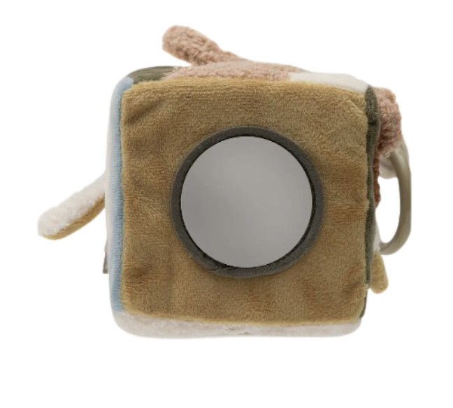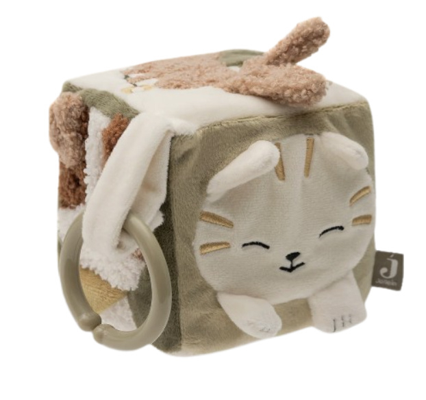 Artikelnummer: J68102 OverzichtDeze zachte activiteitenkubus uit de Tiny Park collectie is een betoverend speeltje. Met schattige dieren zoals een kat, hond en uil en interactieve elementen zoals knisperende oortjes en een spiegel, stimuleert het de zintuigen en motorische ontwikkeling van je baby. Een vrolijke en leerzame kubus, perfect voor urenlang speelplezier in de box of onderweg!