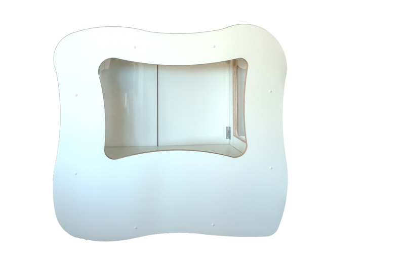 De kijkkast is gemaakt van hoogwaardig berkenmultiplex en afgewerkt met wit HPL. Dit zorgt voor een frisse, rustige uitstraling én maakt de kast sterk, duurzaam en eenvoudig schoon te houden, perfect voor intensief dagelijks gebruik.