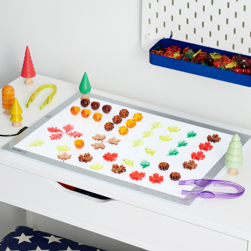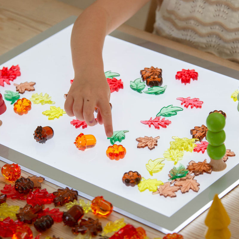Artikelnummer: CT73167 OverzichtKleurrijke, gedetailleerde bladeren en zaden om te tellen, sorteren, patronen te maken en te gebruiken bij eenvoudige rekenactiviteiten (optellen, aftrekken, delen of vermenigvuldigen). Door de doorschijnende herfstkleuren zijn ze ideaal voor gebruik op een lichtpaneel en de gedetailleerde kenmerken geven de set een tactiel element.