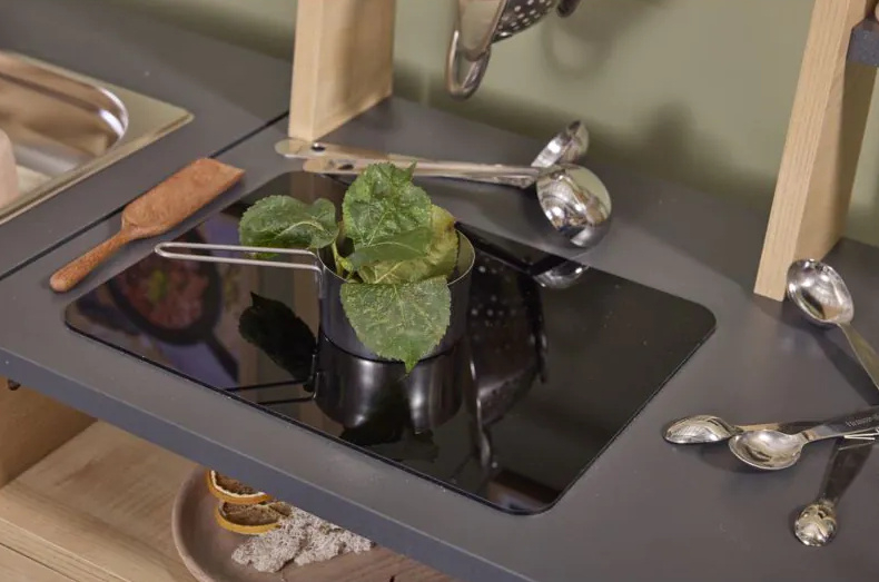 - Realistisch ontwerp: Deze keuken is voorzien van een realistische kookplaat in elektrische stijl en brengt fantasiespel tot leven.