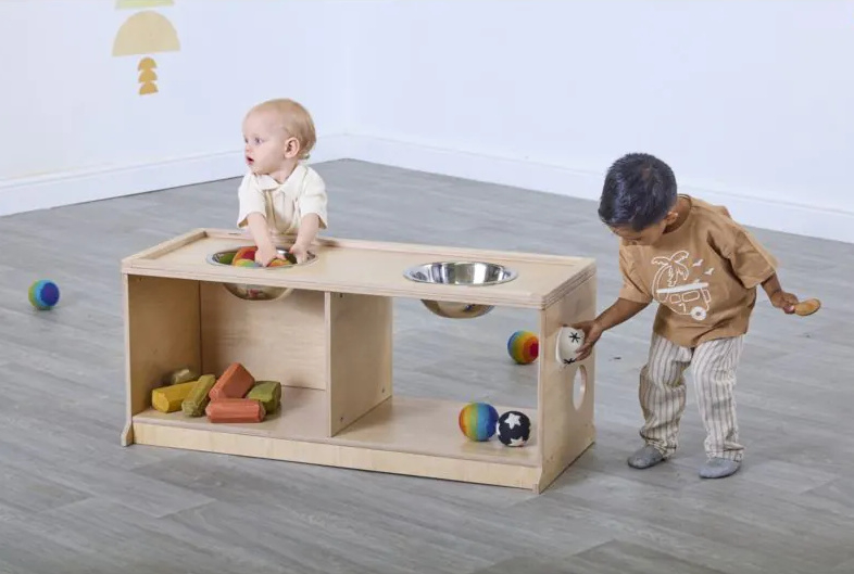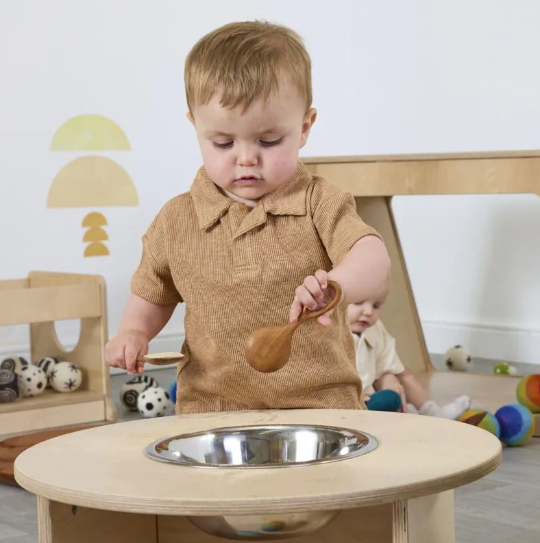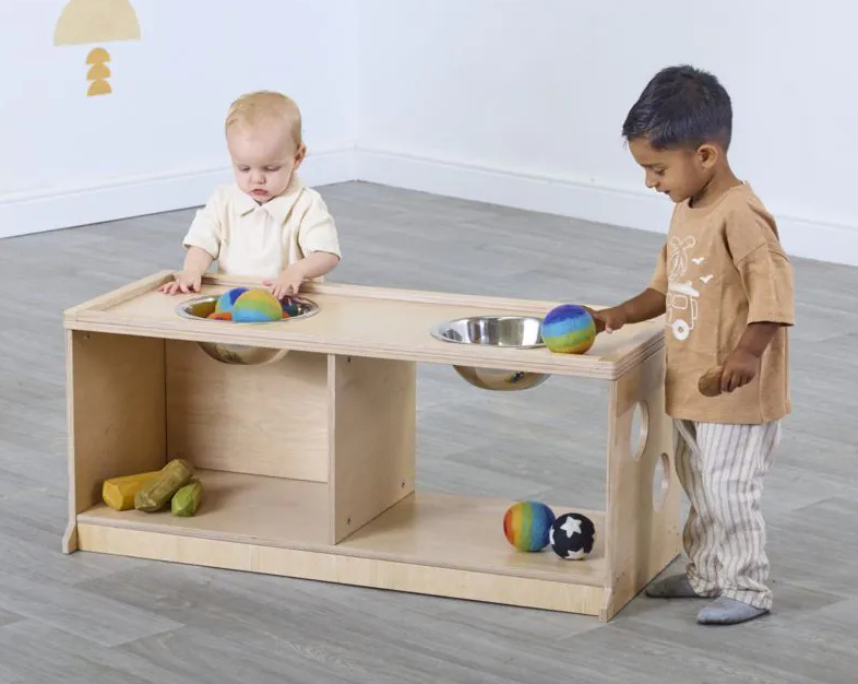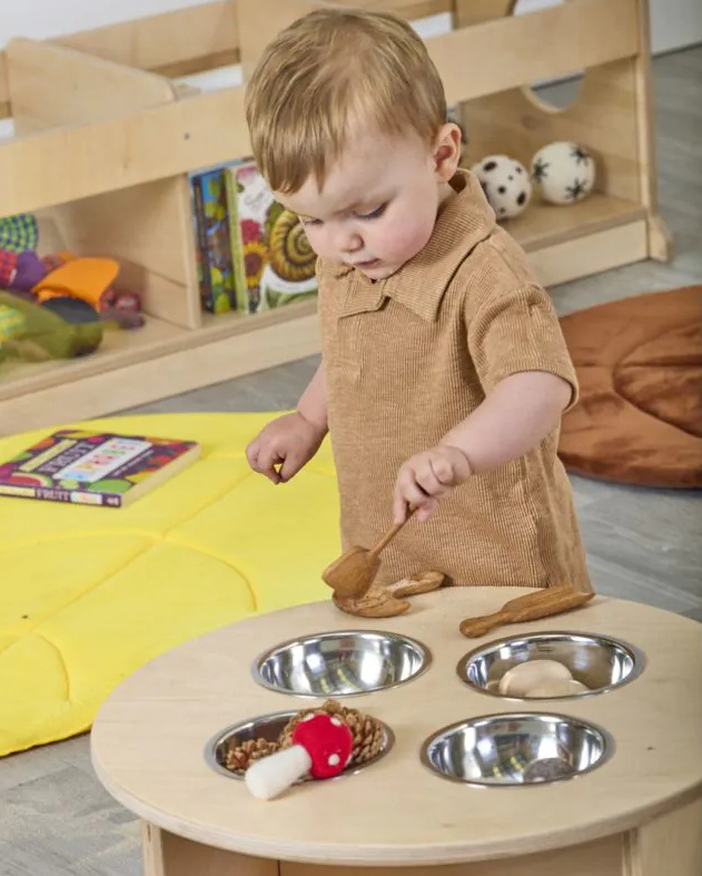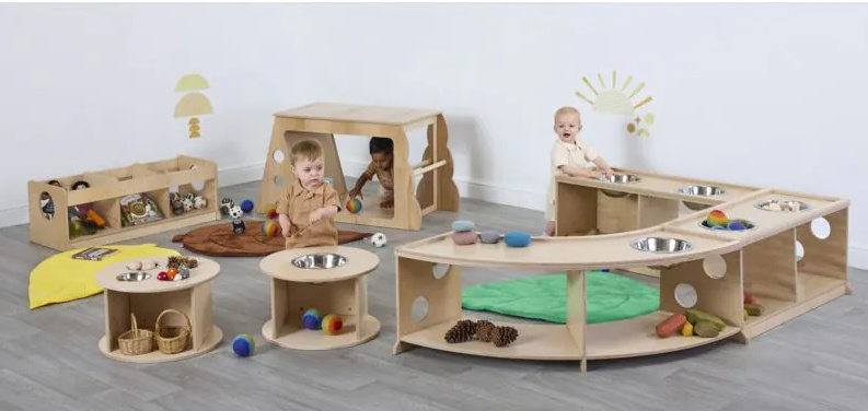Deze meubelset voor peuters onder de drie jaar biedt tal van voordelen voor de ontwikkeling en het leerproces. Deze gemengde set ondersteunt de grove motorische ontwikkeling en biedt voldoende ruimte om te kruipen, rond te lopen, zich op te trekken en de eerste stapjes te zetten. Kinderen zullen het geweldig vinden om onder, in en uit de gezellige ruimtes te schuifelen, waardoor ze werken aan hun hand-oogcoördinatie en proprioceptief bewustzijn. Jonge kinderen zullen zeker ook werken aan hun probleemoplossend vermogen, door manieren te vinden om in en uit elk meubelstuk te komen en ondertussen ‘kiekeboe’ te spelen. We hebben ervoor gezorgd dat er ook plek is voor ontdekkingsspel, met meegeleverde metalen kommen, boekenkorven en kabelhaspeltafels voor groot los speelgoed. Alle leergebieden, gesorteerd.