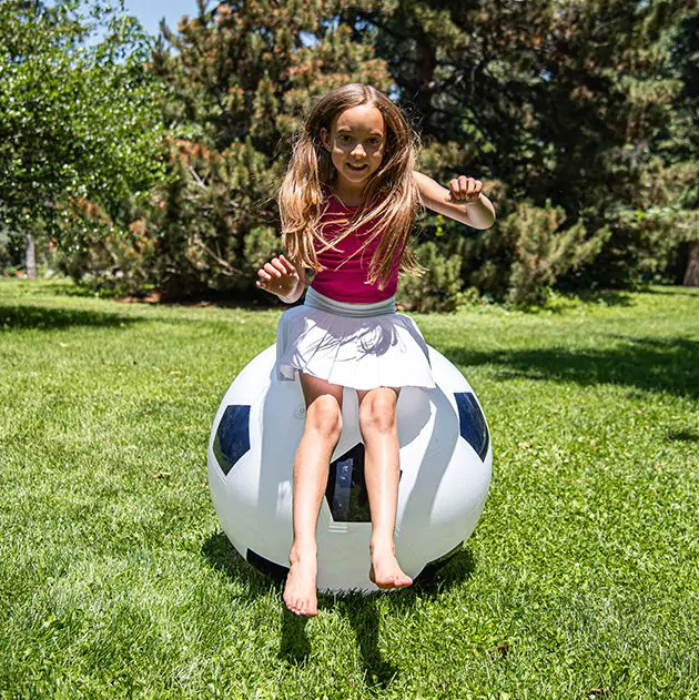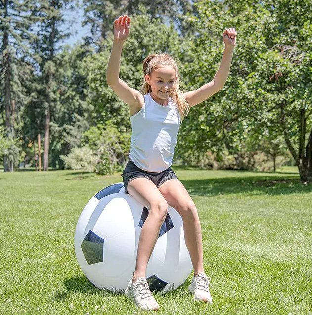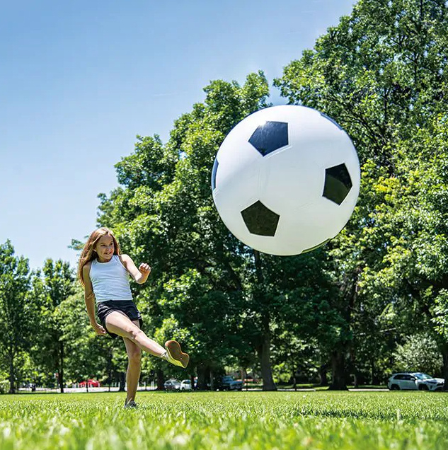 Breng het voetbalspel naar een heel nieuw niveau! Deze gigantische opblaasbare voetbal is met zijn indrukwekkende doorsnee van 76 cm een absolute blikvanger op elk speelveld. Of het nu gaat om een energieke pauze op het schoolplein of een sportieve middag bij de BSO, deze bal nodigt direct uit tot bewegen en samenwerken.