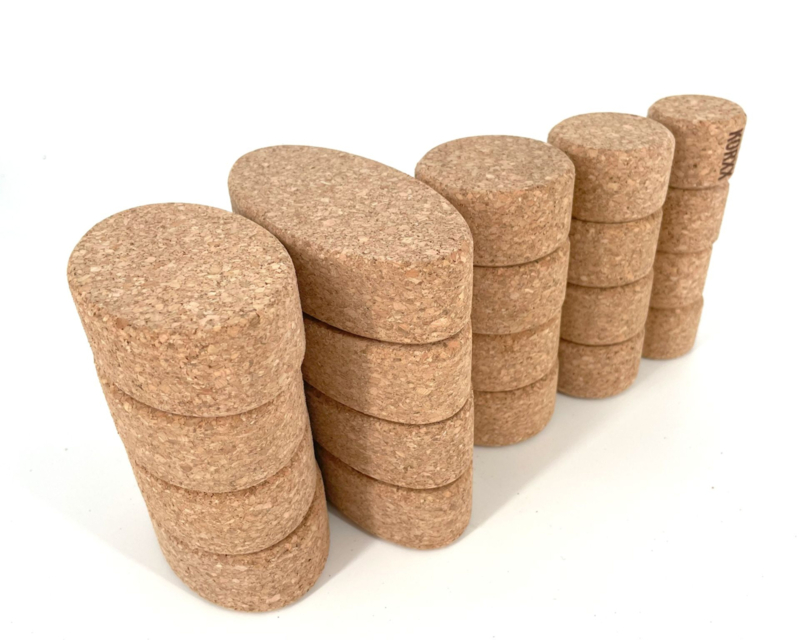 20 ronde en ovale kurkblokjes voor creatief kinderspel vanaf 18 maanden.