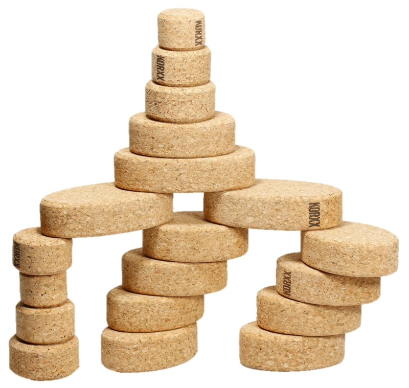 Licht, zacht, stil en stabiel: dat zijn de minimalistische bouwblokken van KORXX. Ze bestaan voor 100% uit geperst kurkgranulaat, dat wordt geproduceerd uit hernieuwbare houtsoorten in een duurzaam bosbeheer. Door het speciale oppervlak hechten de blokjes uitstekend aan elkaar en maken zo stabiele constructies mogelijk zonder wegglijden. Het vrij creëren van structuren stimuleert creativiteit en verbeeldingskracht en zorgt voor zelfvertrouwen door positieve succeservaringen. De KORXX-bouwblokjes zijn anti-allergeen en brengen vanwege hun gewicht een lager risico op letsel met zich mee, zodat zelfs de allerkleinste kinderen vanaf twee jaar ermee kunnen spelen.