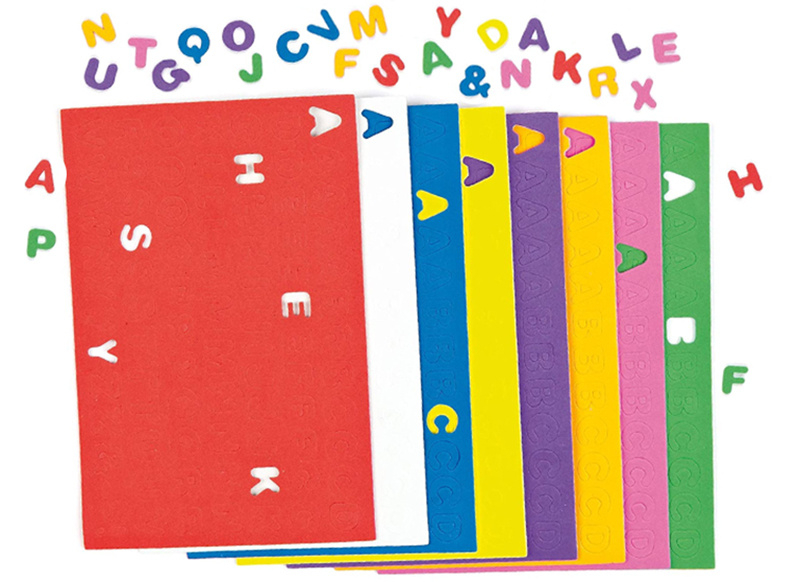 Artikelnummer: RN4393 OverzichtLetters in foam/knutselrubber. In 8 verschillende kleuren. De letters zijn zelfklevend.