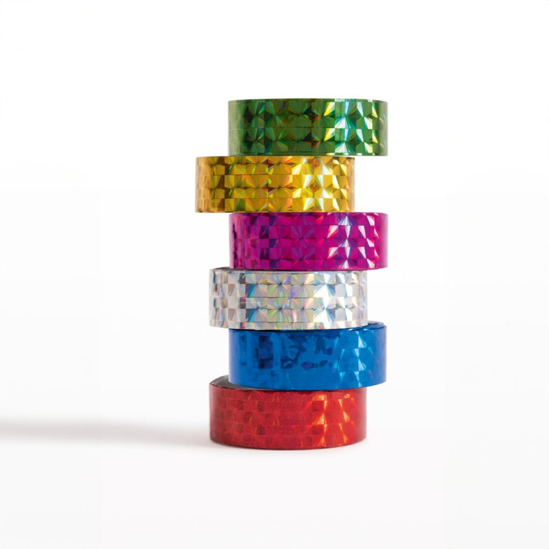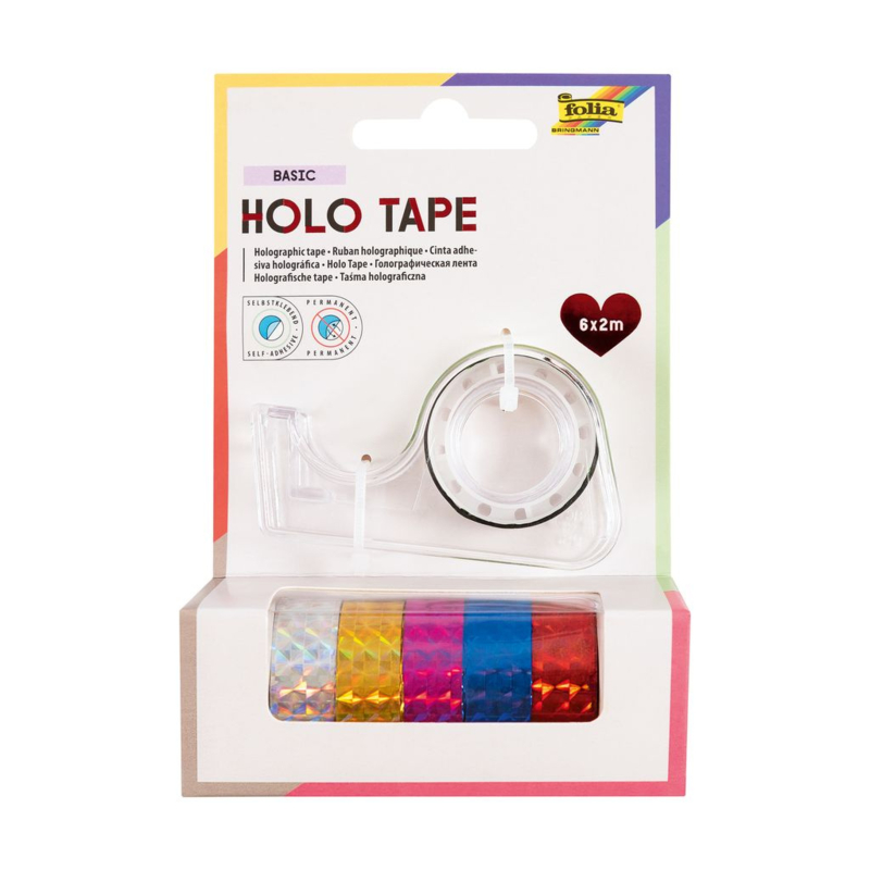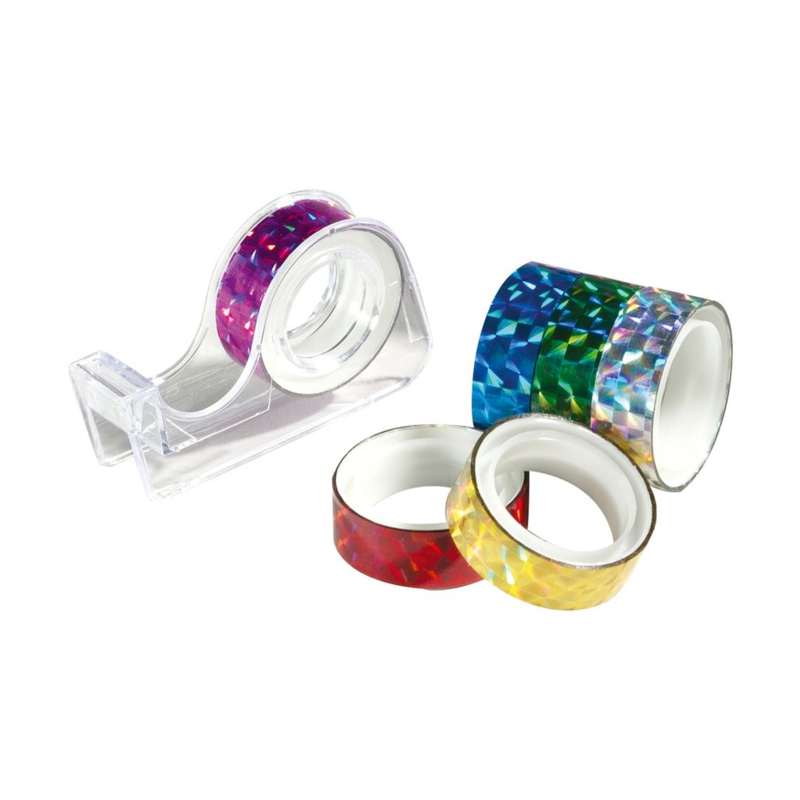 Artikelnummer: TE1512 OverzichtHolografisch plakband met houder in 6 kleuren.
