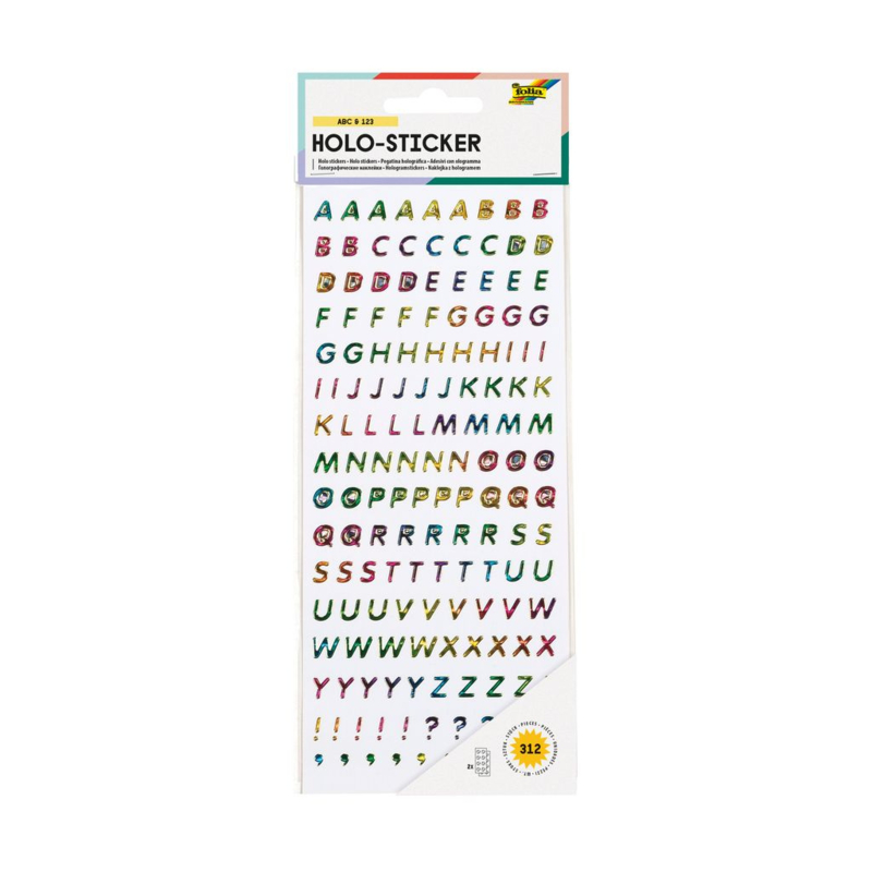 Artikelnummer: F17102 OverzichtHolografische stickers letters en getallen, gekleurd.