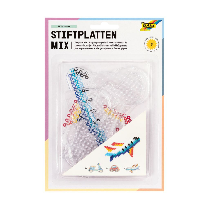 Artikelnummer: F73213 OverzichtDeze set bestaat uit 3 strijkkralen borden met als thema vervoer :