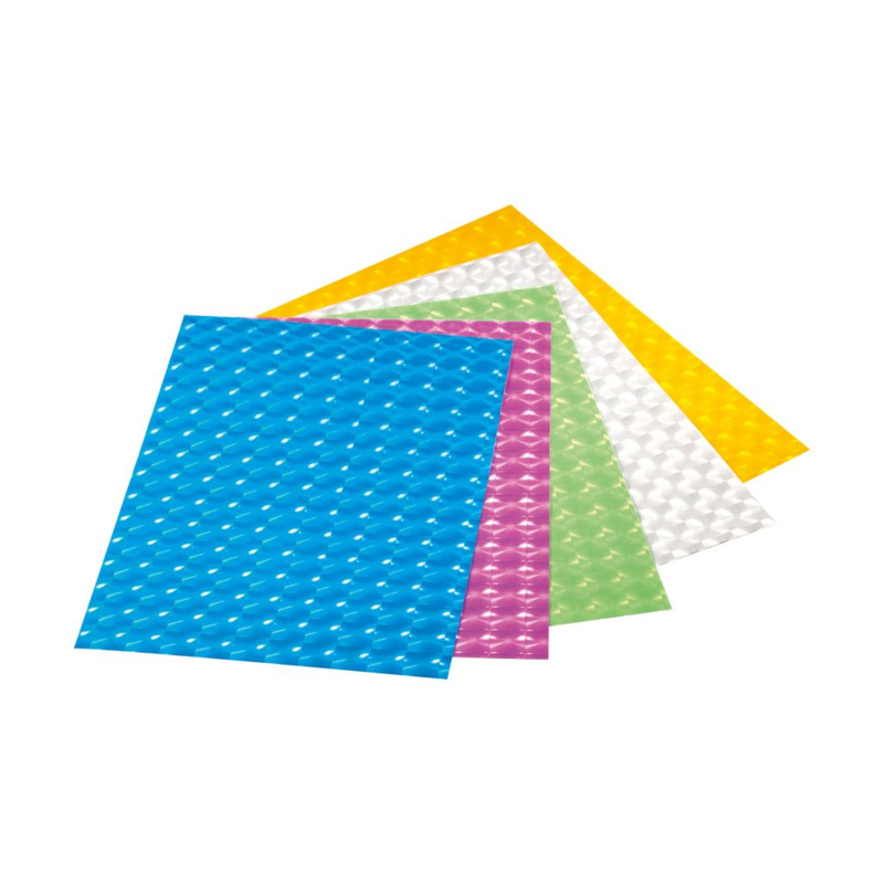 Artikelnummer: F810409 OverzichtCreatieve folie voor het maken van bijvoorbeeld lantaarns, wenskaarten, het uitknippen of ponsen van decovormen enz. Heel speciaal holografisch 3D-effect. Set van 5 vel geassorteerde kleuren.