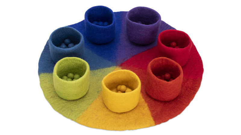 Handgemaakt van 100 % schapenwolDeze prachtige 120-delige vilten set is handgemaakt en bestaat uit een 7-voudig verdeelde viltmat in zachte regenboogkleuren met 7 bijpassende…€ 59,00